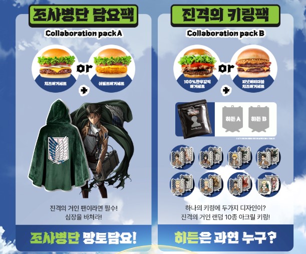 바로 글로벌 인기 애니메이션 '진격의 거인'과의 콜라보 세트를 출시하며, 남다른 브랜드 마케팅을 선보이고 있습니다. 애니메이션 팬이든, 버거 애호가든, 이번 기회를 놓치지 마세요.
