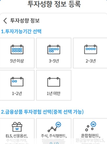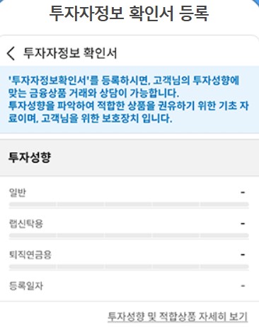 ⑤ 금융정보 입력 (거래 목적, 투자성향 등)