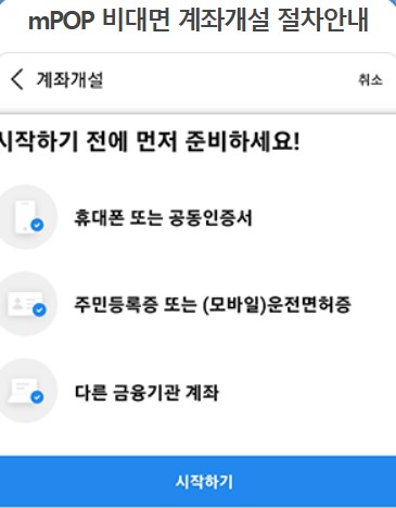 스마트폰 앱으로 진행하는 비대면 계좌개설 절차는 아래와 같습니다.