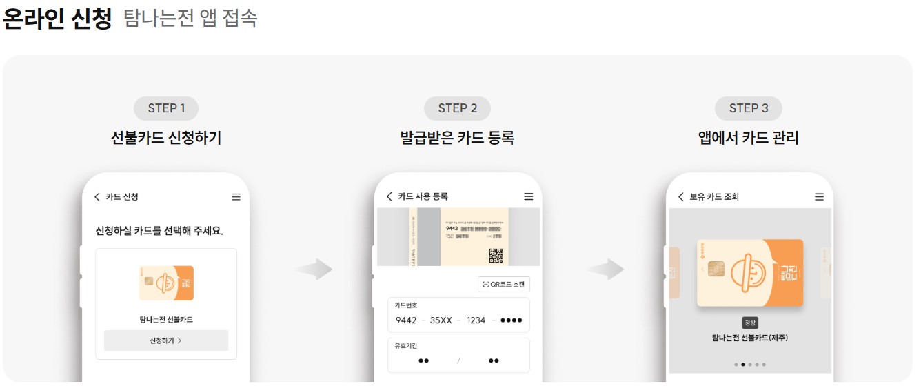 🔹 탐나는전 카드형 발급은 온라인으로 간편하게 가능